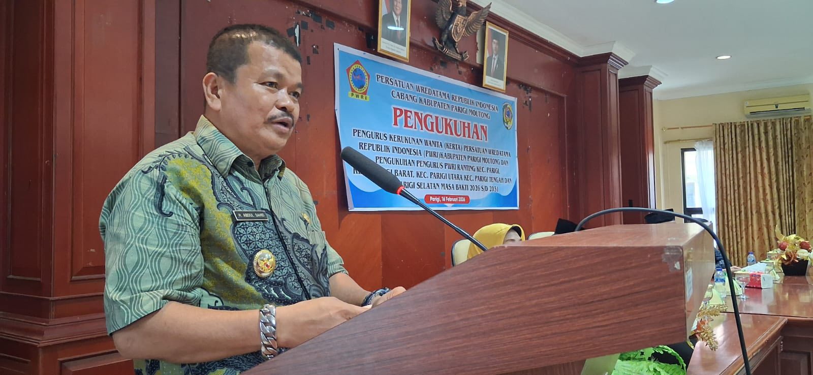 Indigo –Wakil Bupati Parigi Moutong, H. ABDUL Sahid menghadiri pengukuhan pengurus Kerukunan Wanita (Kerta) Persatuan Wredatama Republik Indonesia (PWRI) Kabupaten Parigi Moutong dan pengukuhan pengurus Ranting PWRI Ranting Kecamatan Parigi, Parigi Barat, Parigi Utara, Parigi Tengah dan Parigi Selatan masa bakti 2026 sampai dengan 2031. Bertempat di Aula Lantai II Kantor Bupati Parigi Moutong. Senin (16/2/2026).